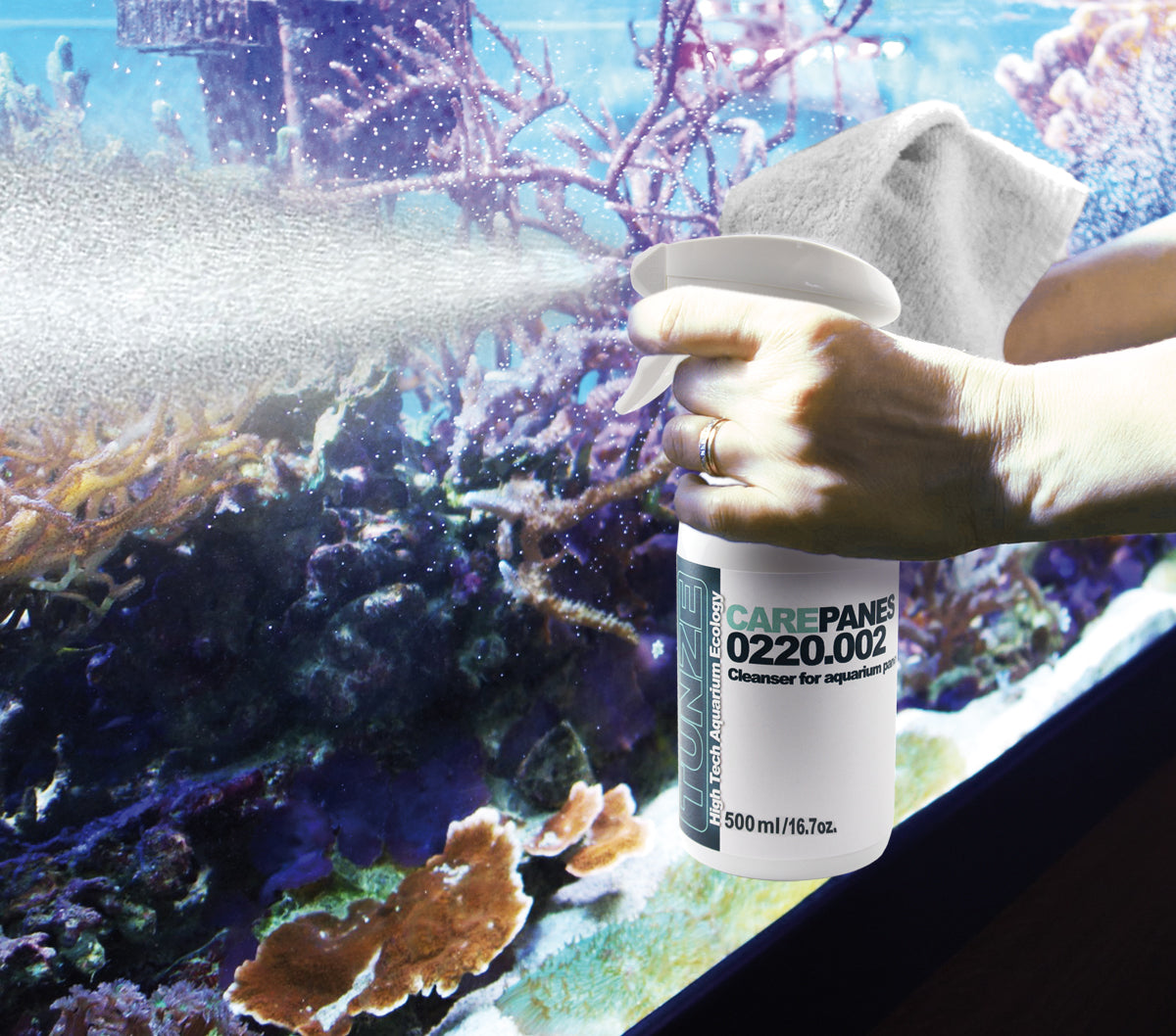 Care Panes consists of a combination of organic surfactants with an ethereal oil, and can be used to easily and effectively clean aquariums, aquarium cabinets and lighting components.